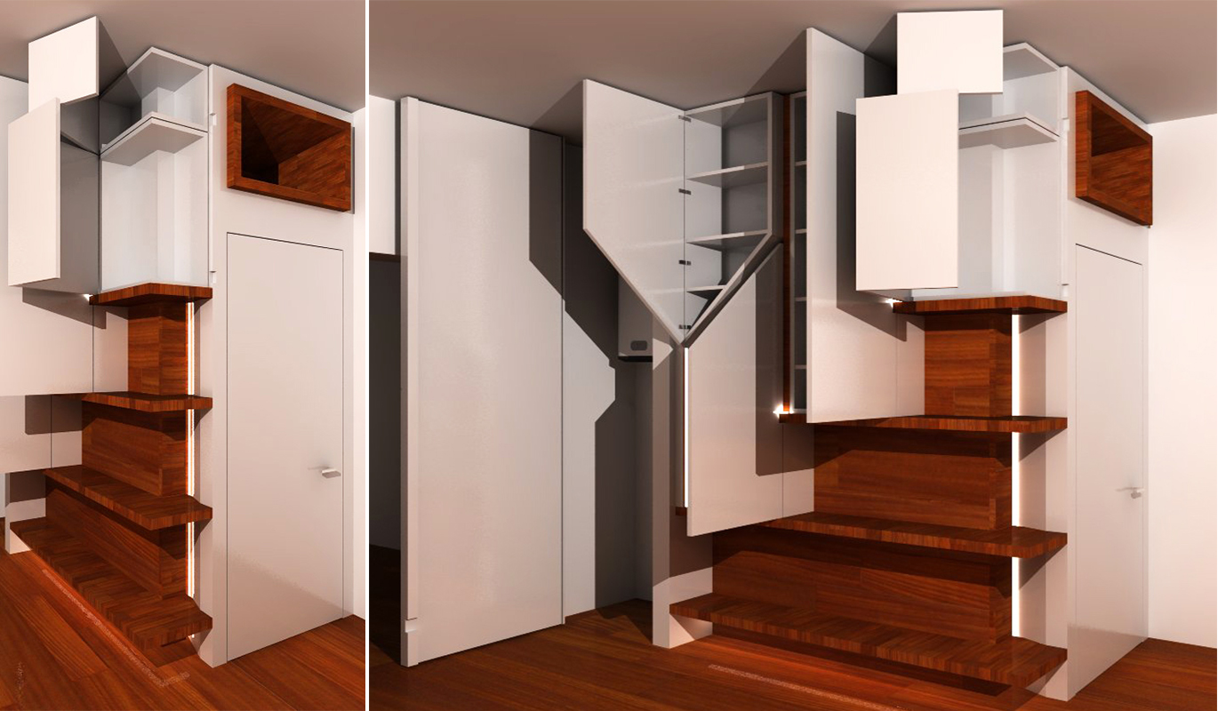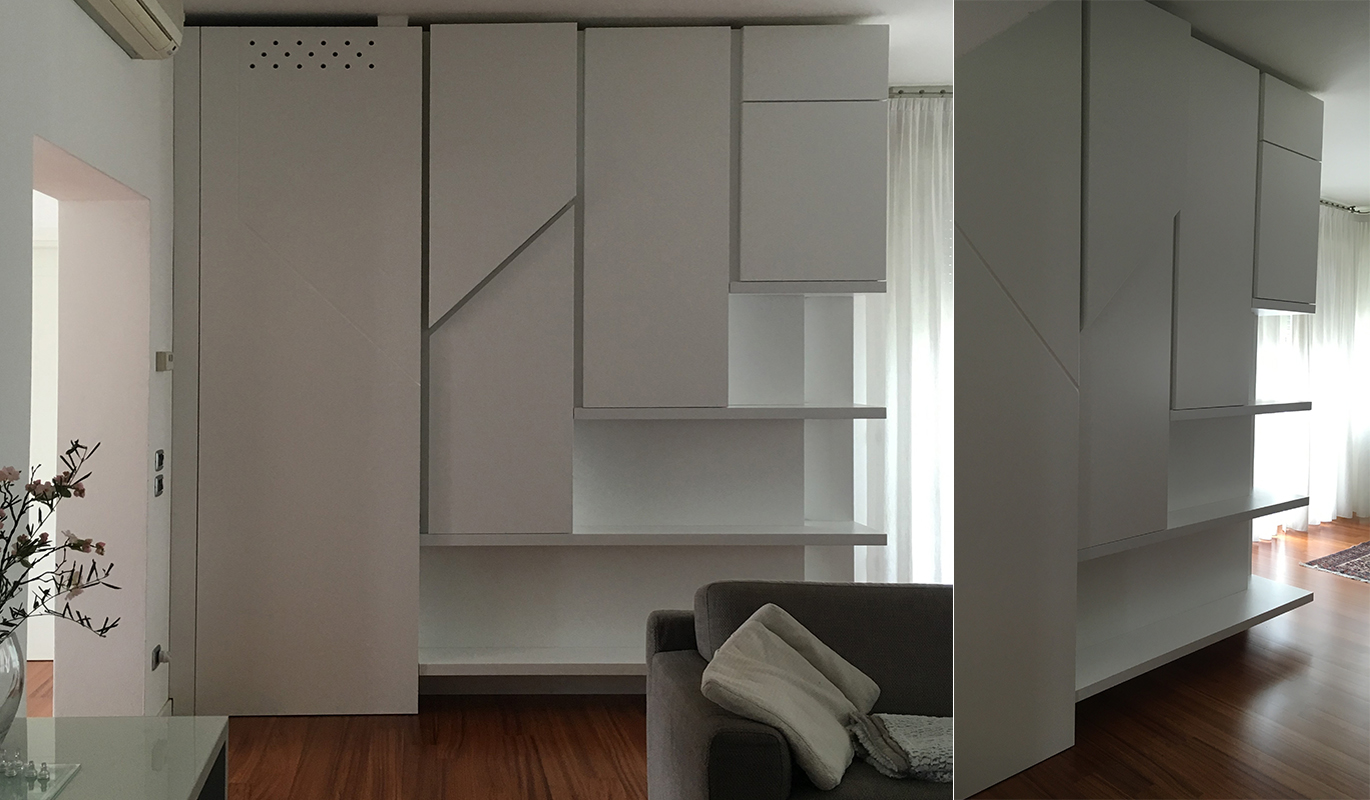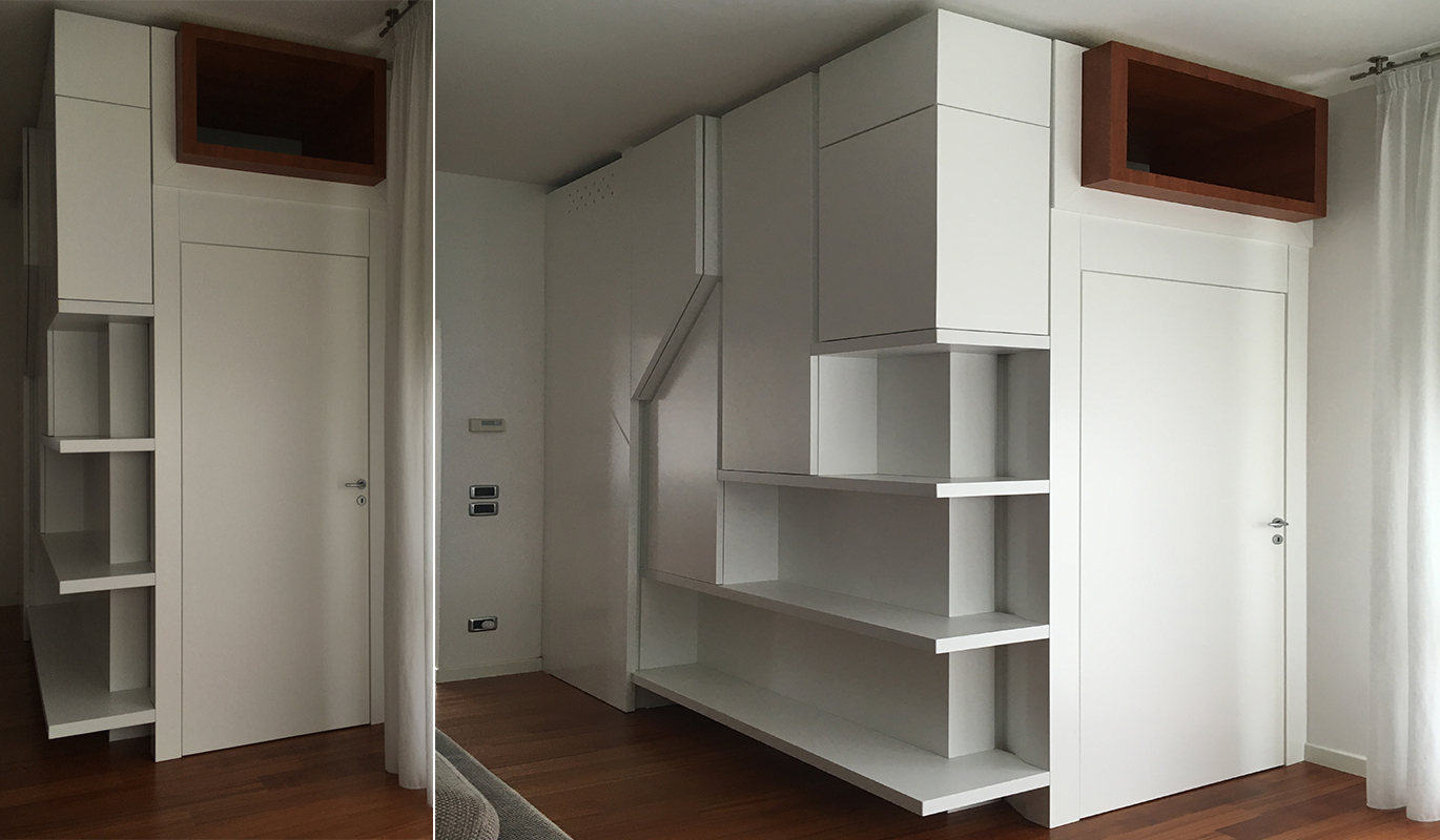 Arredi su misura personalizzano un attico e superattico con terrazzo nel centro di Forli.