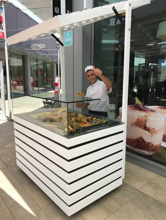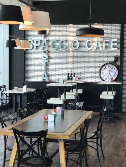 Questo progetto riguarda l’allestimento dello stesso concept in una nuova location più grande e collocata in corrispondenza dell’ingresso laterale dello SHOPPING VILLAGE CASTEL ROMANO. Rispetto alla precedente impostazione, grazie alla maggiore ampiezza del locale, si è potuto configurare uno spazio interno più confortevole con tavoli e divani che creano un’atmosfera friendely che si estende anche allo spazio esterno.